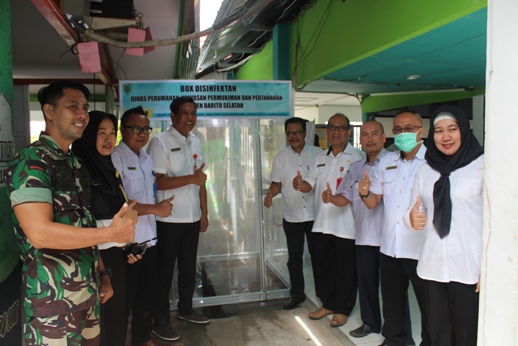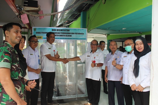 RSUD Jaraga Sasameh mendapatkan bantuan berupa Box Desinfektan dari Dinas Perumahan Kawasan Pemukiman dan Pertanahan (PERKIMTAN) Kabupaten Barito Selatan dalam upaya pencegahan virus Corona (Covid – 19) di RSUD Jaraga Sasameh Buntok. Plt Dinas Perkimtan Barito Selatan Ir. Teguh Leiden yang didampingi sekretaris Perkimtan Barito Selatan Beny Mahar dan Intel Kodim 1012 Sersan Mayor Jarot Santoso Bati menyerahkan box desinfektan yang kemudian ditempatkan di pintu masuk RSUD Jaraga Sasameh kepada Direktur RSUD Jaraga Sasameh buntok pada hari rabu 1 april 2020 .
