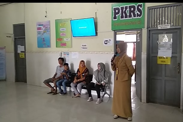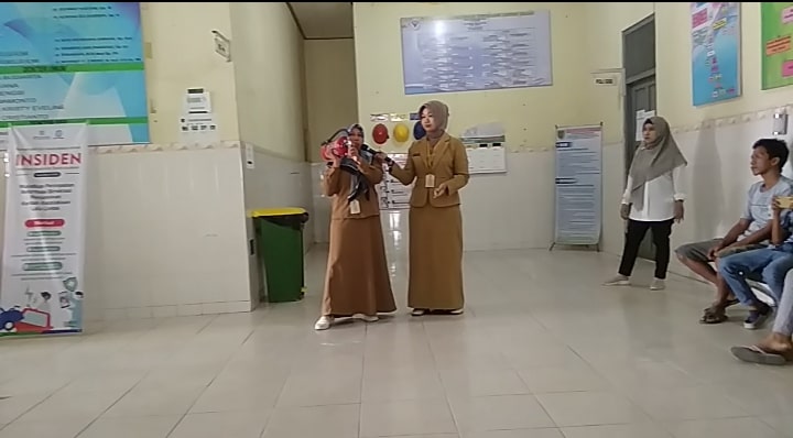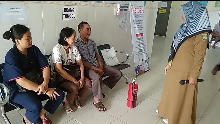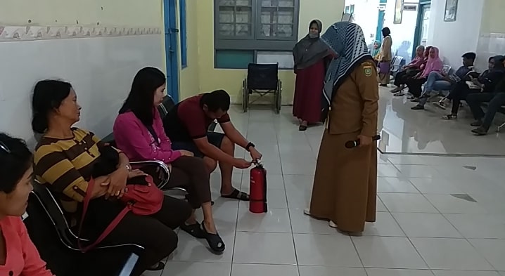 Petugas memberikan materi dan contoh penggunaan APAR kepada pengunjung Poliklinik RSUD Jaraga Sasameh