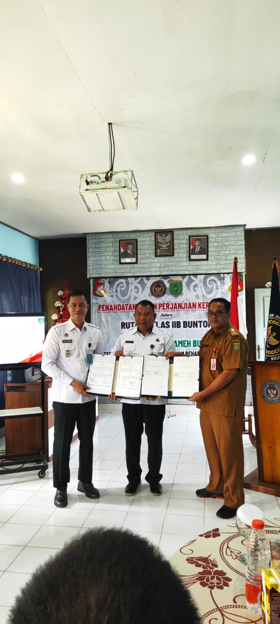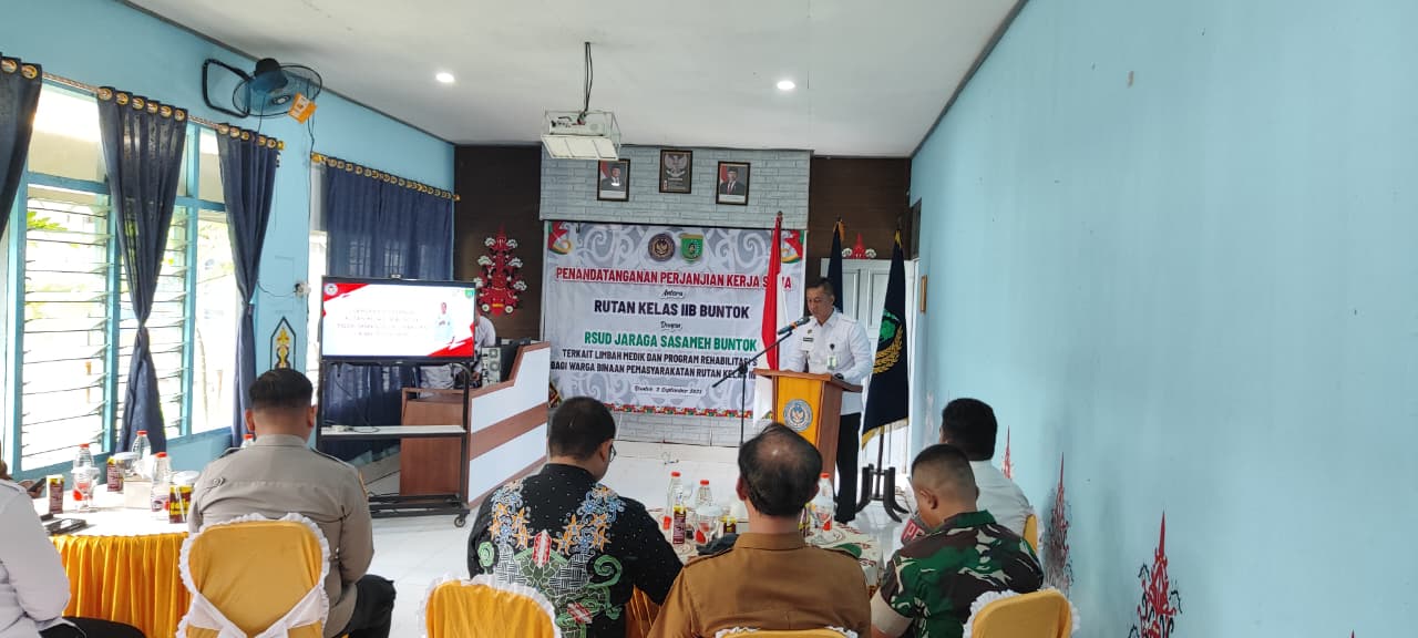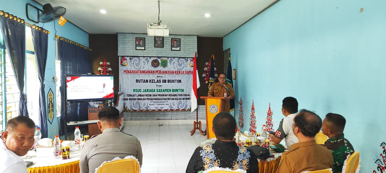 Penandatanganan perjanjian kerjasama antara rutan kelas IIB Buntok dengan RSUD JARAGA SASAMEH terkait limbah medik dan progran Rehabilitasi sosial bagi warga binaan permasyarakatan Rutan kelas IIB Buntok.