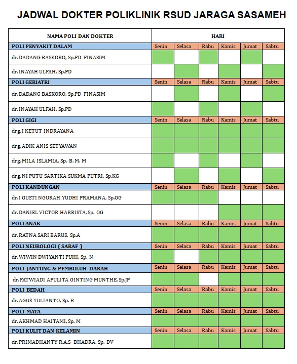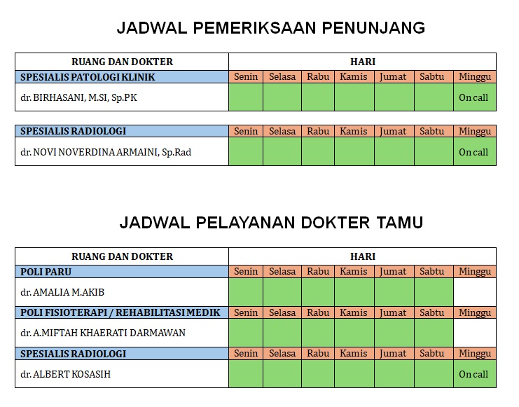 Jadwal pelayanan dokter sewaktu-waktu dapat berubah, Perubahan jadwal akan diinfokan selanjutnya.